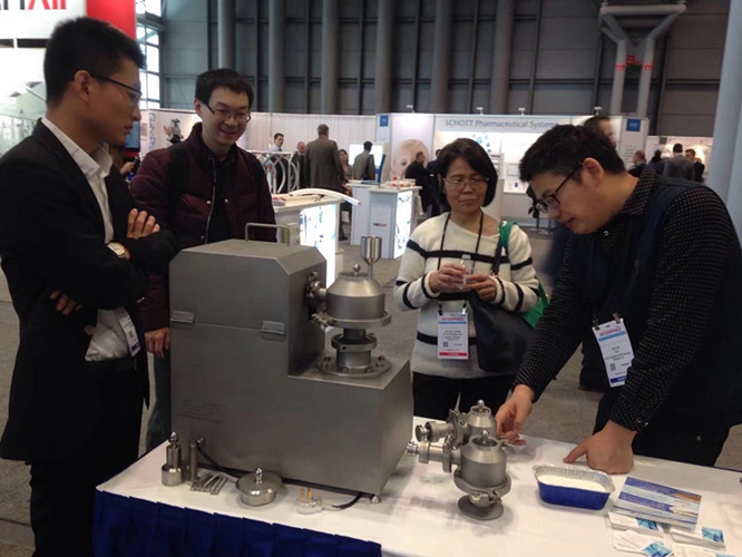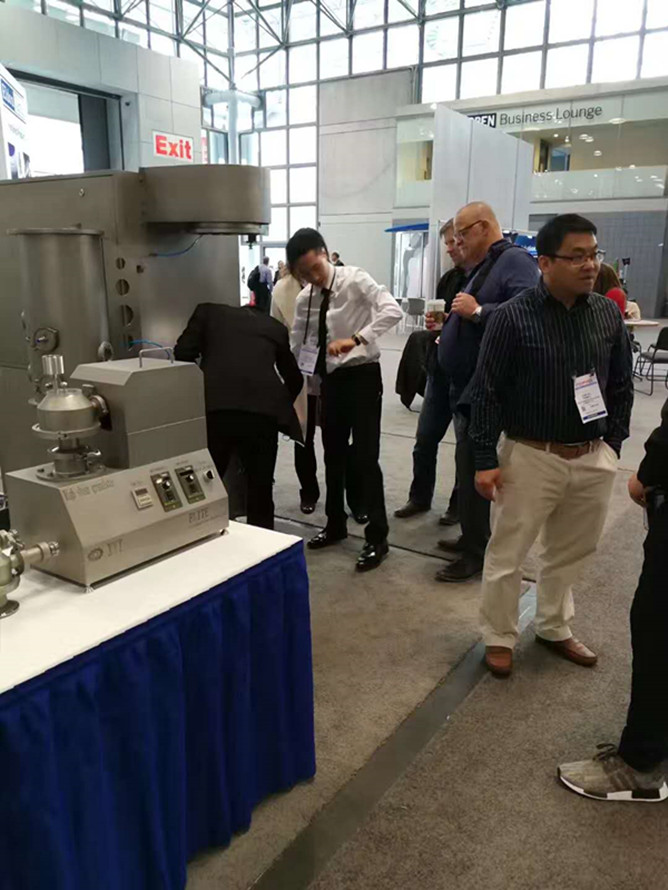 Interphex 2018在2018年4月17日~19日如期在紐約Javits中心舉行,深圳市信宜科技有限公司攜公司明星產(chǎn)品——流化制粒包衣機(jī)、高速濕法混合制粒機(jī)、擠出滾圓機(jī)(集擠出、滾圓、干燥、包衣于一體)、高效包衣機(jī)等參加此次展覽會(huì),與國際制藥工業(yè)企業(yè)進(jìn)行面對(duì)面的溝通和交流。我們獨(dú)特的設(shè)備吸引了不少制藥同行的駐足與觀望,現(xiàn)場(chǎng)的工作人員分別為他們演示與講解。